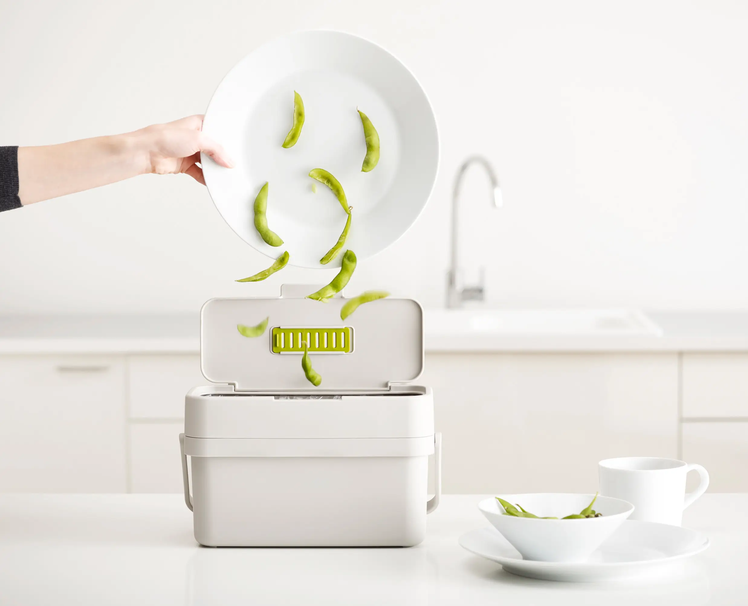 This slimline food waste caddy is designed to make collecting food scraps easier as it features a convenient flip-up lid and extra wide opening.
