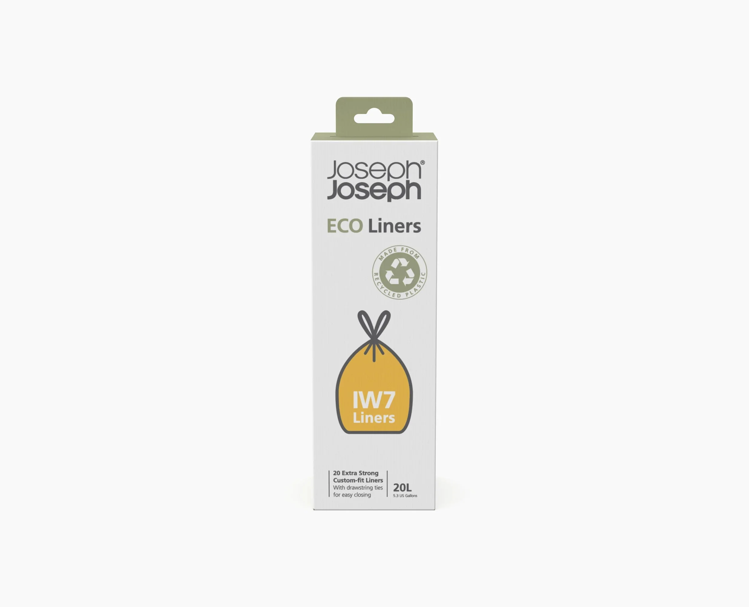 These custom-fit liners are made from a minimum of 70% post-consumer waste recycled plastic. They have an extra-strong construction and feature drawstring ties for easy closing. By choosing them over standard plastic bin liners, you’ll get the perfect fit for your IntelligentWaste bin, help to limit the use of fossil fuels and reduce the amount of virgin plastic going to landfill. Designed for use with the following Joseph Joseph bins: Totem Compact, Totem Pop 40L.