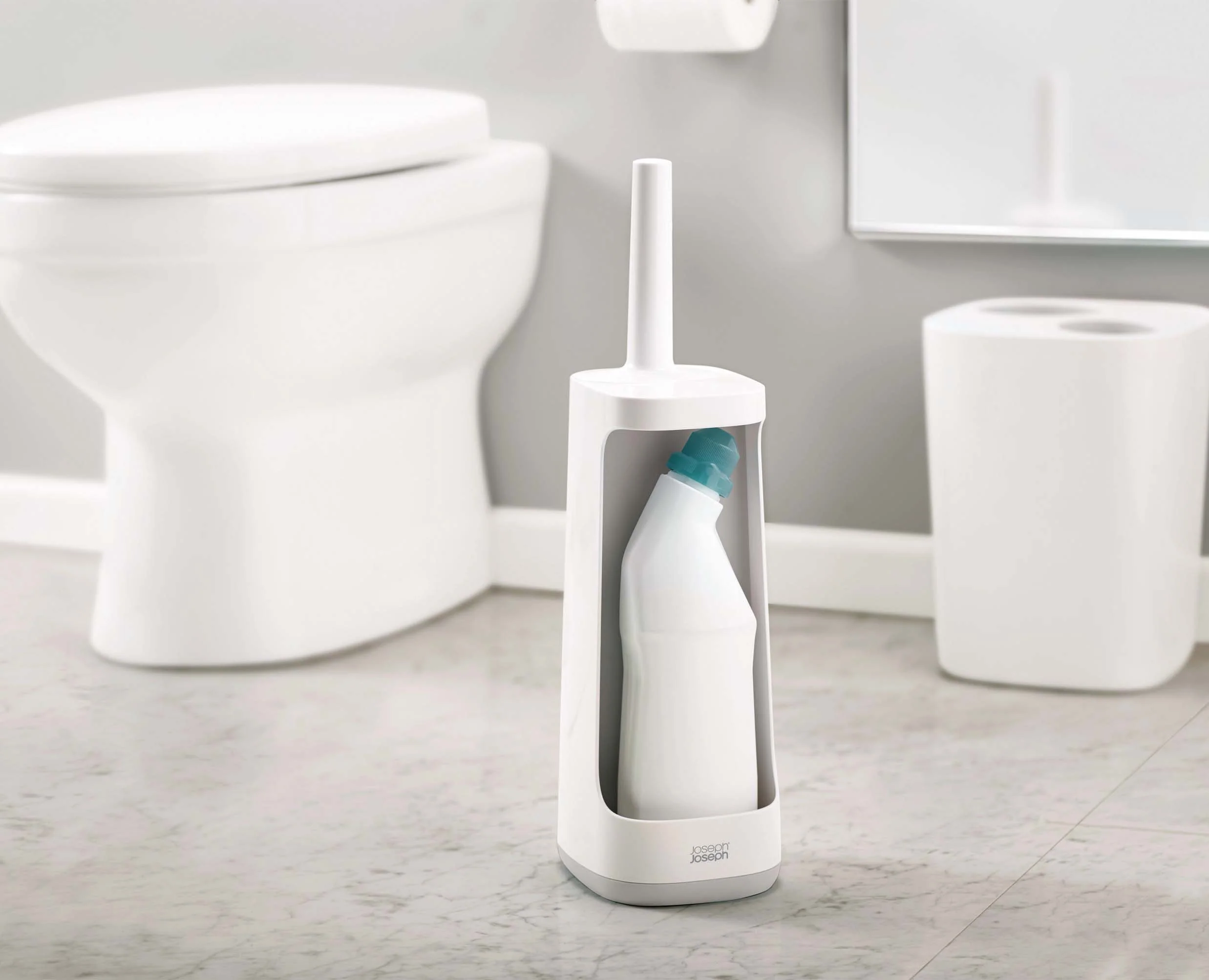 This revolutionary toilet brush comes with a handy caddy so you can neatly store bleach bottles or aerosols out of sight.