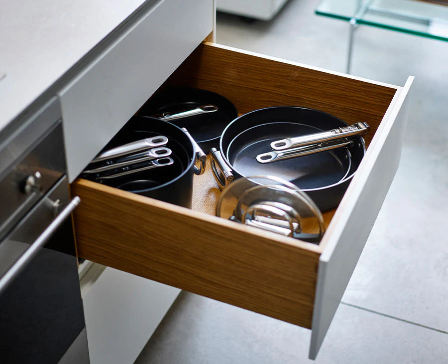 - Saves up to 50% more space than standard pans.