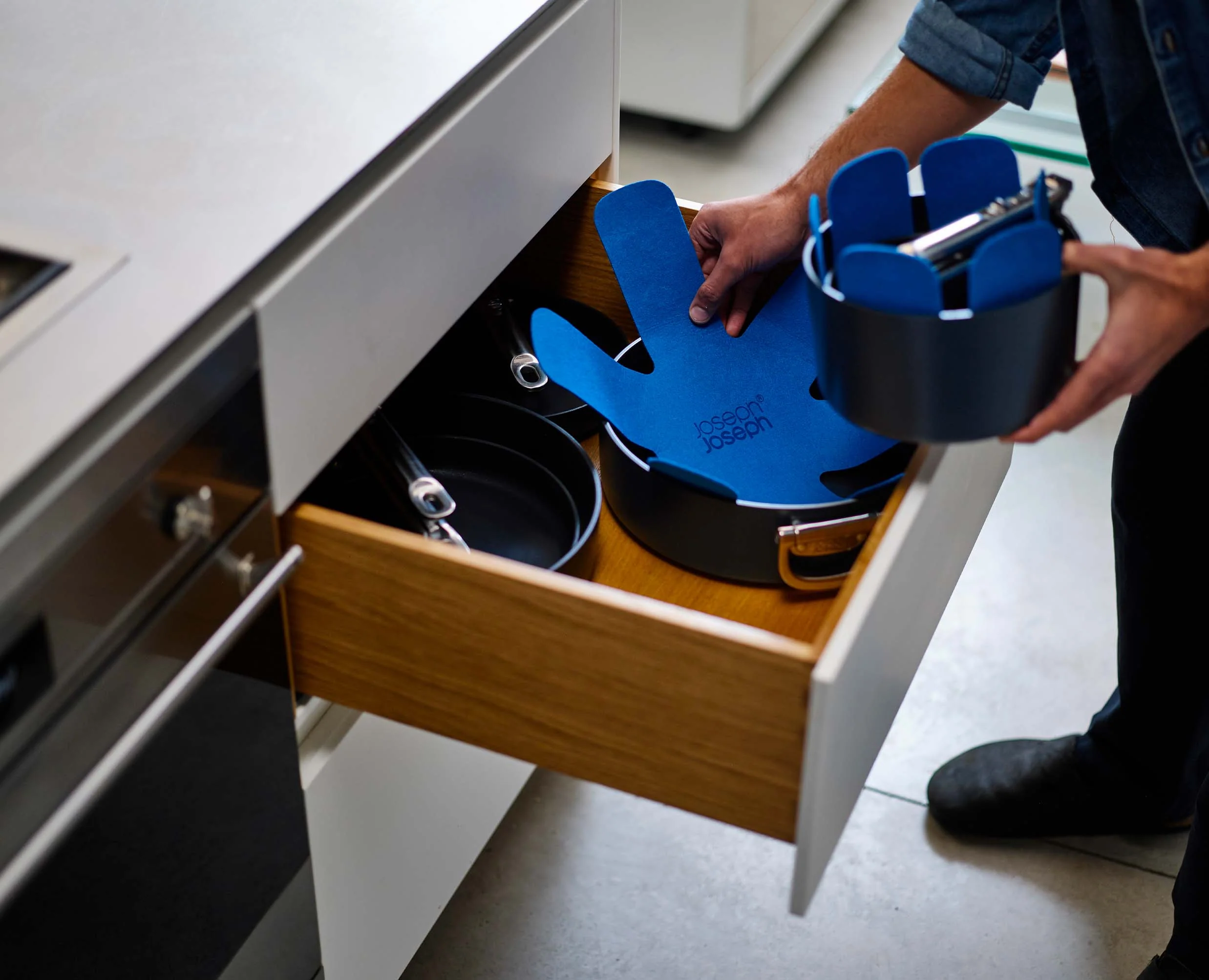 - Provides a soft-yet-sturdy layer between pans when stored inside each other.